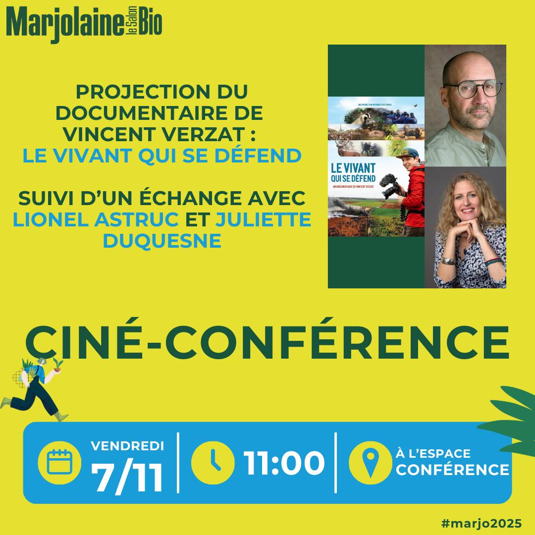 Vendredi 7 novembre 11 h à l’Espace Conférences Projection : « Le vivant qui se défend » – Vincent Verzat. Elle sera suivie d’un échange avec Lionel Astruc et Juliette Duquesne, animée par Françoise Vernet.